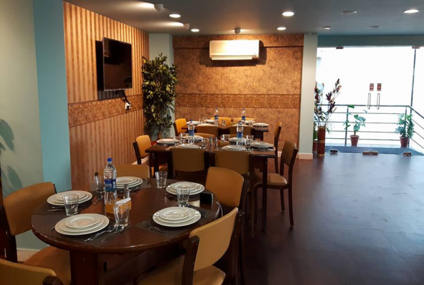 Yes, corporate events, parties and other functions with guests ranging from to 150 can be hosted at Golkonda Chimney.