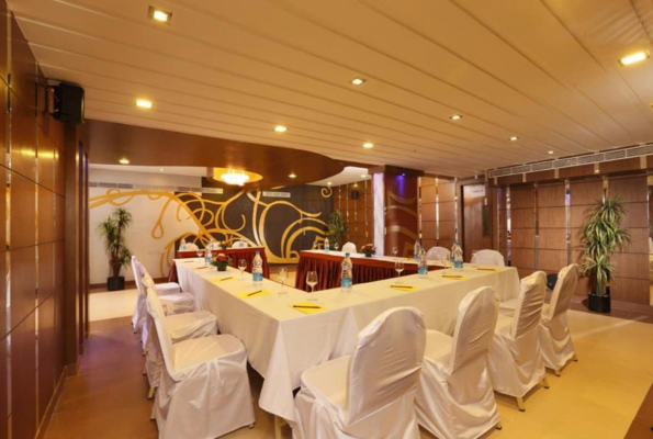 Yes, corporate events, parties and other functions with guests ranging from to 80 can be hosted at Krishinton Suites.