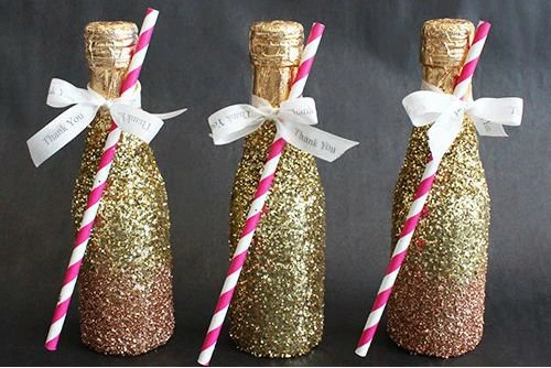 1. DIY Mini Glitter Champagne Bottles