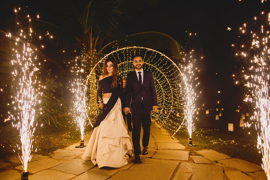 Let your friends do the needful – they need to hold the sparklers as the bride and the groom enter and walk through in a display of lights.