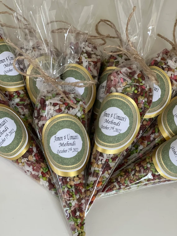 End the celebration on a sweet note with edible Mehndi-inspired treats. Think henna-patterned chocolates, decorative jars filled with mithai, or cupcakes designed like intricate Mehndi patterns. These not only serve as desserts but also as thoughtful party favors for your guests to take home.