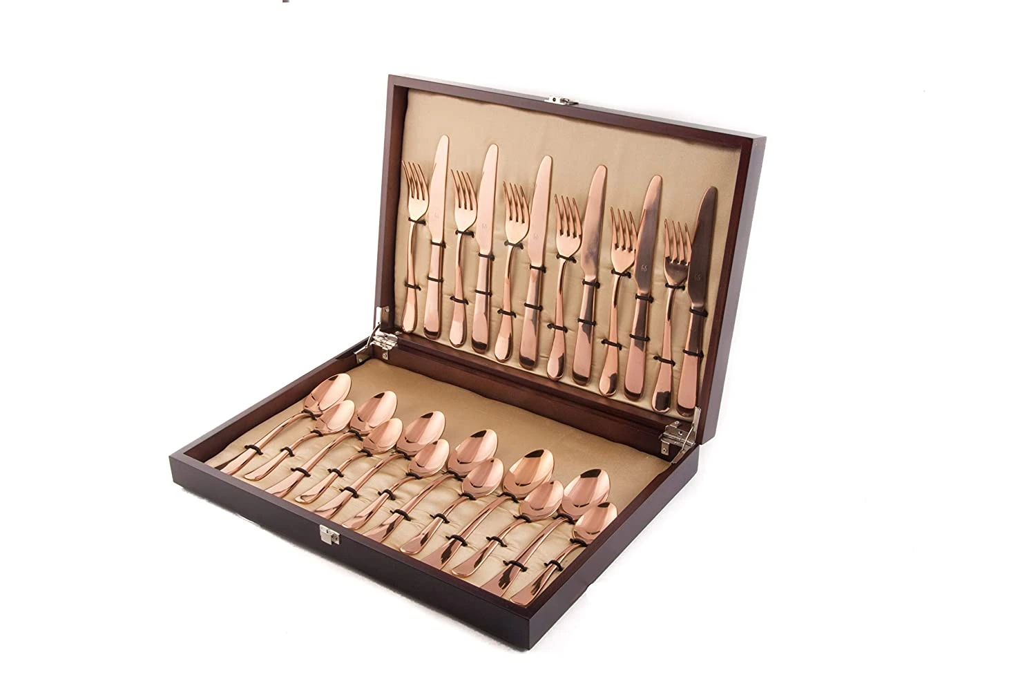 To buy click HereA scintillating cutlery set will be a brilliant idea to gift at a housewarming party. New house, new cutlery! ;)