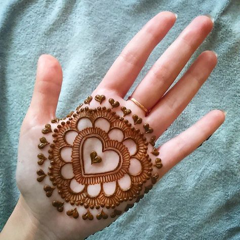 Hearts are a favorite with children. So why not get this very sweet mehndi pattern engraved on their hands, complete with a large heart motif in the middle and some jagged strokes edging it.