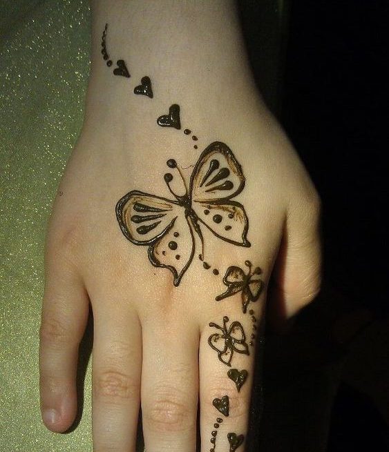 Glittery and charming items are a girl's favorite. So why not combine the two in their mehndi? Here's a beautiful butterfly henna tattoo that doesn't require any additional expertise. All you have to do now is draw a little butterfly on the back of your hand and sprinkle it with glitter.