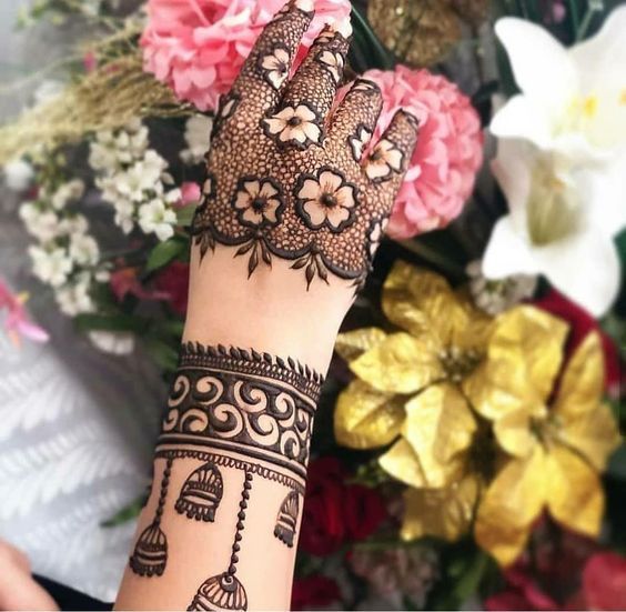 This is a must-try mehndi design for youngsters. This design will appeal to your kid whether they enjoy nature or fine craftsmanship. It can be applied to the palms or the tops of the hands. The pattern is sophisticated, with leaves and floral embellishments that are finely detailed and give their arms such a lovely hue.