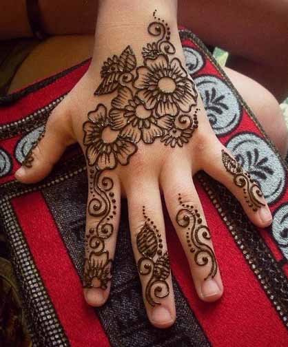 2. Floral Pattern With Leaf Motifs Mehendi Designs for Kids