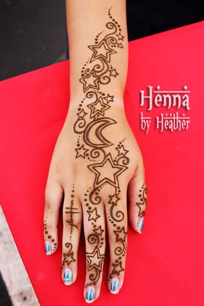 P.C.- Henna by HeatherEvery child adores the stars and the moon, which is why this mehndi design for kids is so appealing. This kid's mehndi design, which features basic designs, stars, and dots, will fascinate your young one and make their hands look lovely.