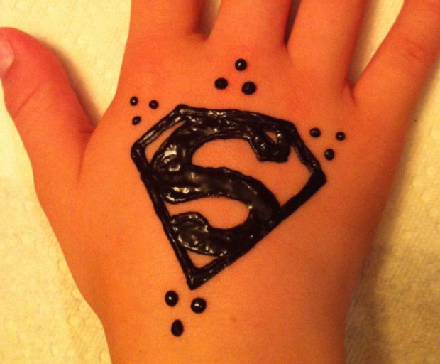 For the backs of your kid's hands, how about a mehndi design that looks like a superman stamp.