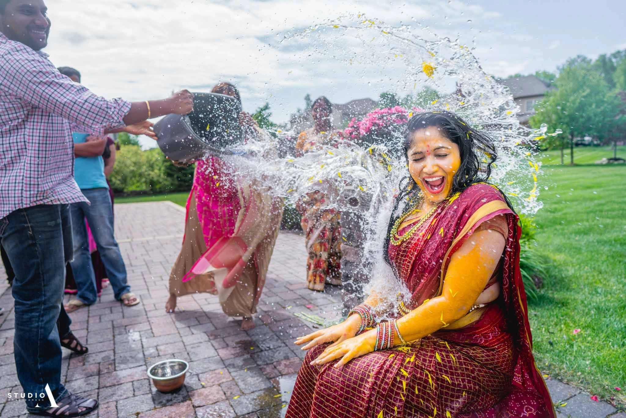 4. Splashing Haldi on Bride by her Sister and Friends