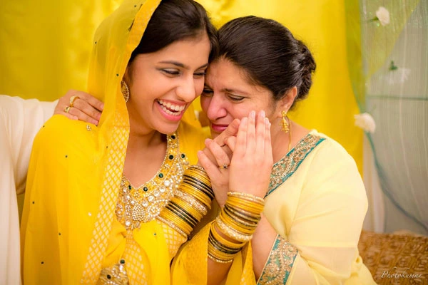 This is the happiest moment in the life of the bride’s mother. She has had this dream for her daughter that one day her princess will meet her perfect prince. The tears of happiness, those pearl-like droplets, captured in the camera are the best and make for a never to be forgotten moment of a splendid Haldi ceremony.