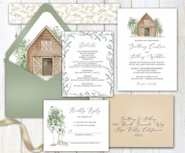 If you're planning on having a minimalist farmhouse wedding, you can start by setting the tone for the venue and décor. Choose neutral shades for the invitations and décor. You can add a variety of different textures to make the venue stand out, for example, use fresh greenery or metallic details to add personality to the décor while maintaining hues of a neutral earthy shade for class and elegance. Add small simple touches to the wedding, to create a thematic tone.