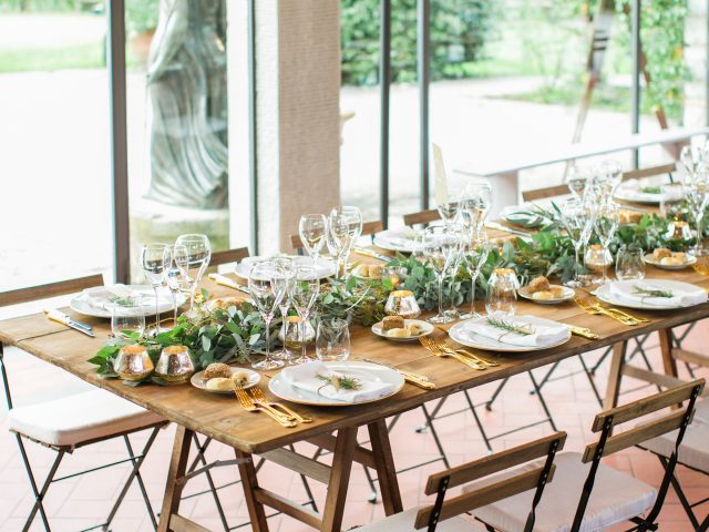 Instead of going all out on the décor, use small centerpieces, candles, and soft-toned table clothes to give a rustic chic look to the venue, or add some color with linens draped across the tables you would seat your guests at. You can also add unique crystals or glassware to enhance the look of your venue and add a few intentional details that personalize the place for you and your guests.