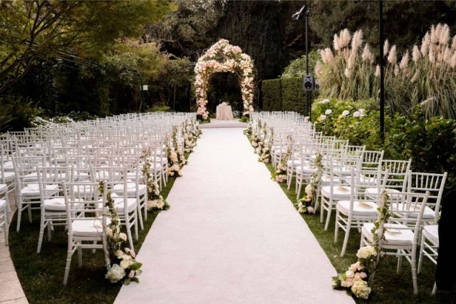 Instead of choosing heavy décor that might draw attention off of the lucky couple during the ceremony, go for meaningful yet minimal décor that will help tie the entire ceremony together. Carefully choose a selection of greenery, flowers, or fabric to create beautiful backdrops that add elegance and subtle accents to the ceremony.