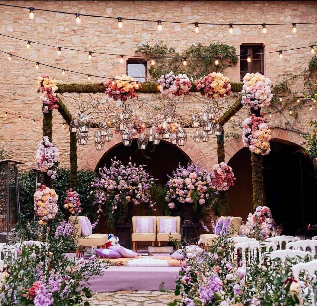 Source: PinterestPom poms and bunting may be the ‘in’ thing, but flowers are still the best prop to be used in the wedding decor. Nothing can be more enthusiastic and sanguine for your auspicious day. This can be probably the best part of your whole wedding theme.