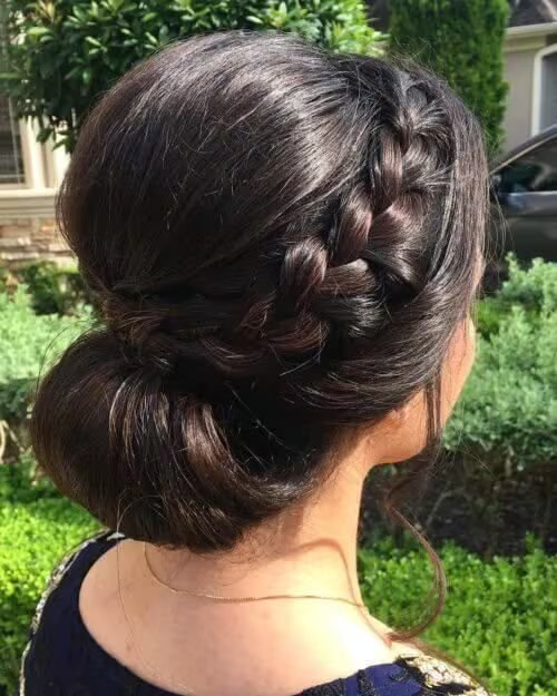 - Crown Braid: Encircling the head like a tiara, the crown braid is for the bride seeking a regal touch. This style, suitable for all hair types, adds a majestic aura to the bridal look.