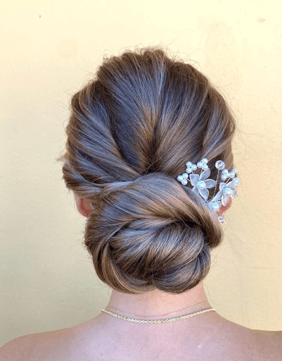 - Simple High Pony: A sleek top knot that pairs flawlessly with gowns, offering a minimalist yet elegant appeal.