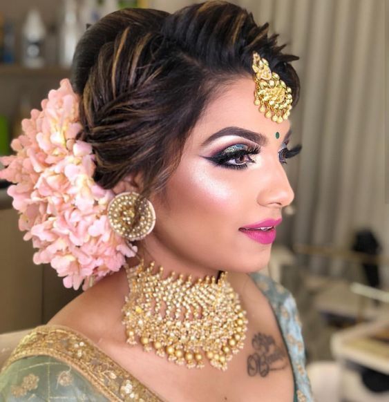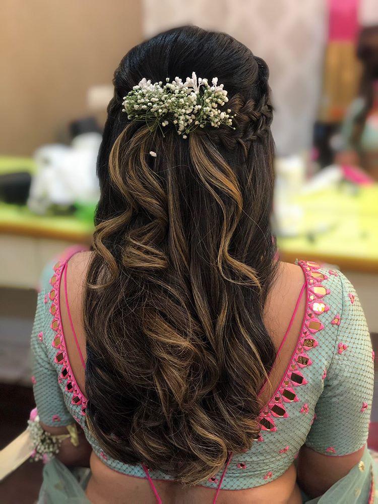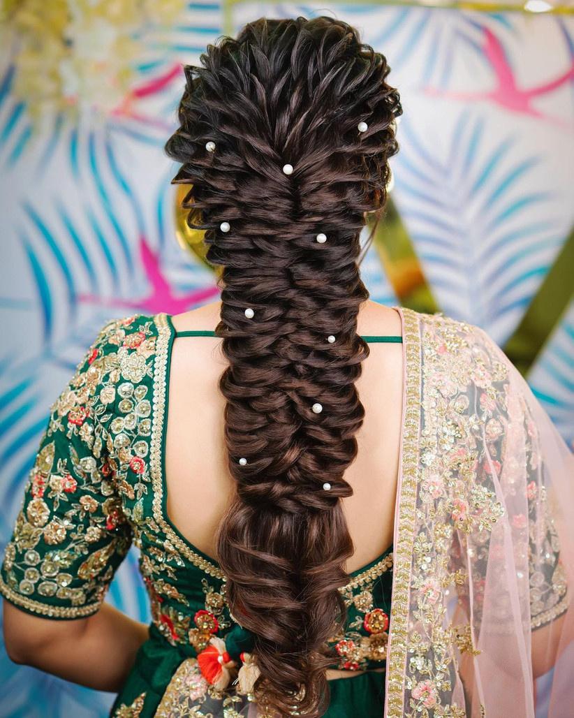 - Curled Up Pony with Side Braid: Ideal for Sangeet functions, this hairstyle is both playful and regal.