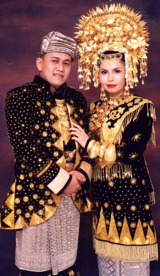 The traditional wedding attire of South-Sumatra Indonesia is called Aesan Gede adorned with a majestic gold headdress. The ornate and elaborate design of the attire is meant to symbolise the elegant and glamorous image of the kingdom of Srivijaya. The brides of Indonesia are also known as Balinese brides as they are characterized by their colourful clothes. These clothes of the bride are made of vibrant Prada textiles. This beautiful wedding attire is topped with a golden headpiece.