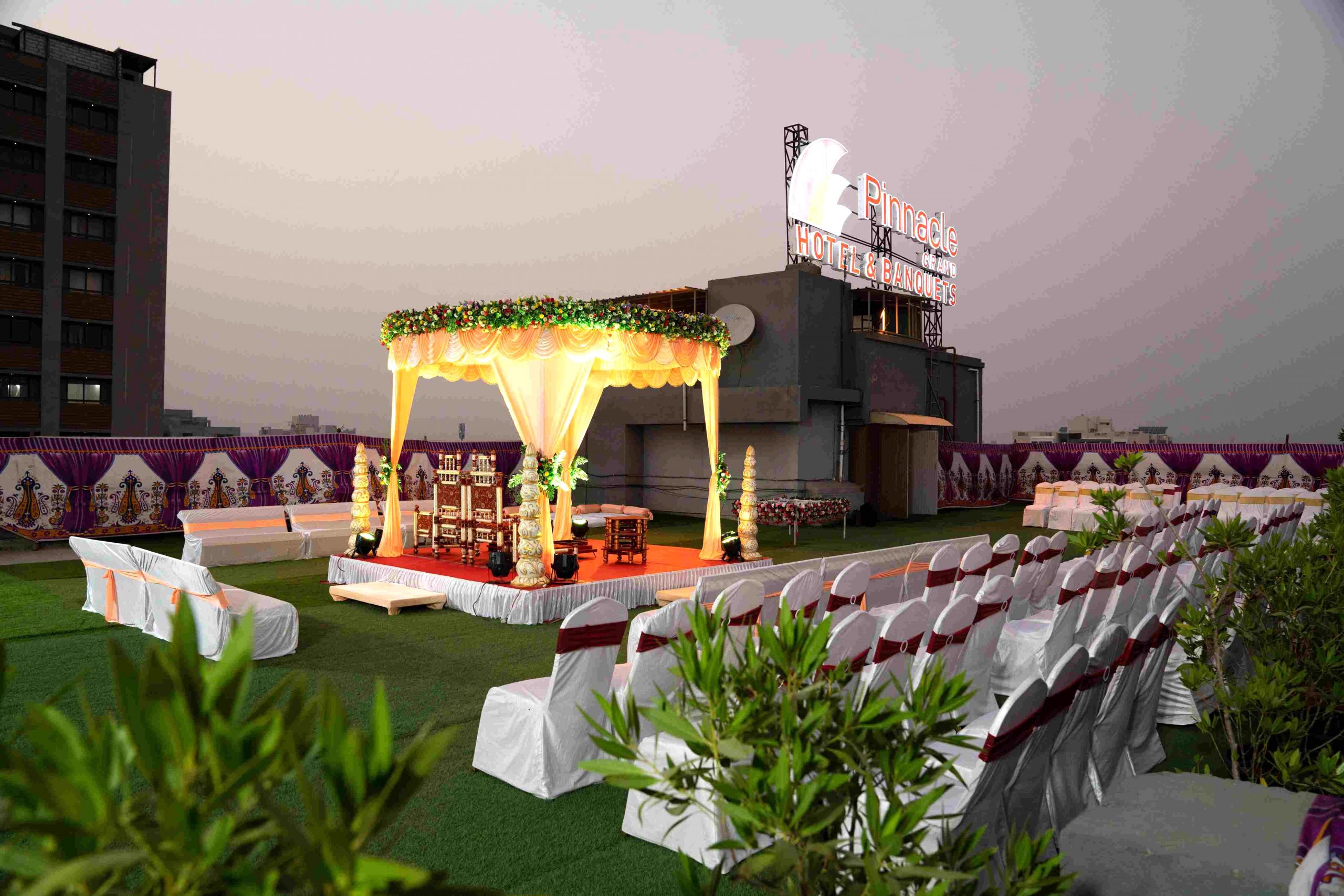 Situated in the bustling centre of Ahmedabad, Hotel Pinnacle Grand is known for its blend of comfort, elegance, and practicality. It has spacious and chic accommodations, ensuring guests to enjoy a restful stay with modern conveniences and tasteful decor in every room and suite. Hotel Pinnacle Grand is also celebrated as an exceptional wedding venue, offering flexible banquet halls that are ideal for ceremonies, receptions, and other special events. The hotel's seasoned event coordinators collaborate closely with couples to customize every aspect according to their preferences, guaranteeing a flawless and memorable celebration.