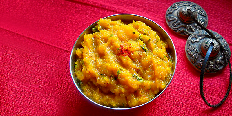 Only one meal called kaddu-bhat, prepared in bronze or earthen pots by burning mango wood, is consumed.