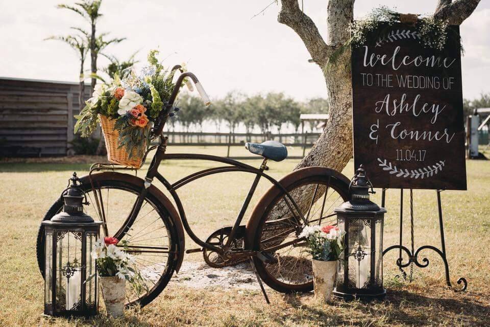 Make a memorable entrance by welcoming your guests with a rustic and quirky vintage bicycle. Decorate the bike with flowers, greenery, or even hanging plants to set the tone for your ceremony. This unique and charming decoration will create a warm and inviting atmosphere for your guests from the moment they arrive.