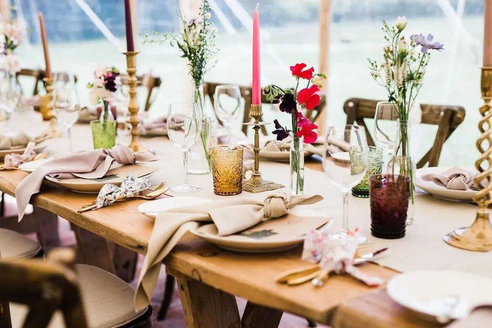 Create a warm and cozy atmosphere with the soft glow of lamps. These unique and unexpected table decorations add a touch of intimacy and charm to your reception. Choose lamps in styles that match your wedding theme and consider using them as focal points on your tables.