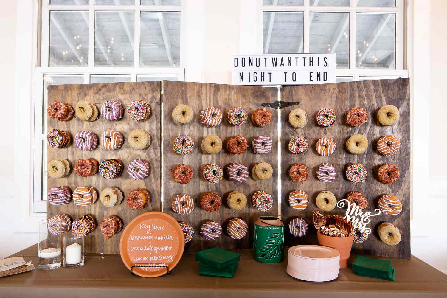 Indulge your sweet tooth and create a fun and unique dessert display with a doughnut wall. These delicious treats arranged on a wall not only serve as a tasty treat but also create a visually appealing focal point. Customize the display with different flavors, colors, and decorations to match your wedding theme.
