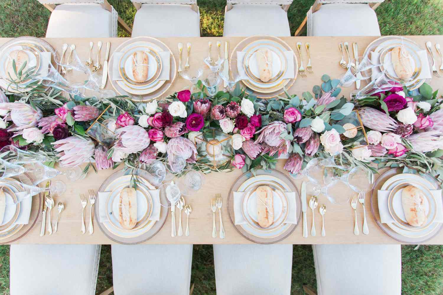 Enhance the dining experience with thoughtful and creative dinner table decorations. Whether it's a canopy of twinkle lights, lamps interspersed in the décor, or a suspended pampas grass arrangement, these unique touches add an element of enchantment and elegance to your dinner table. Create a warm and intimate ambiance that will make your guests feel truly special.