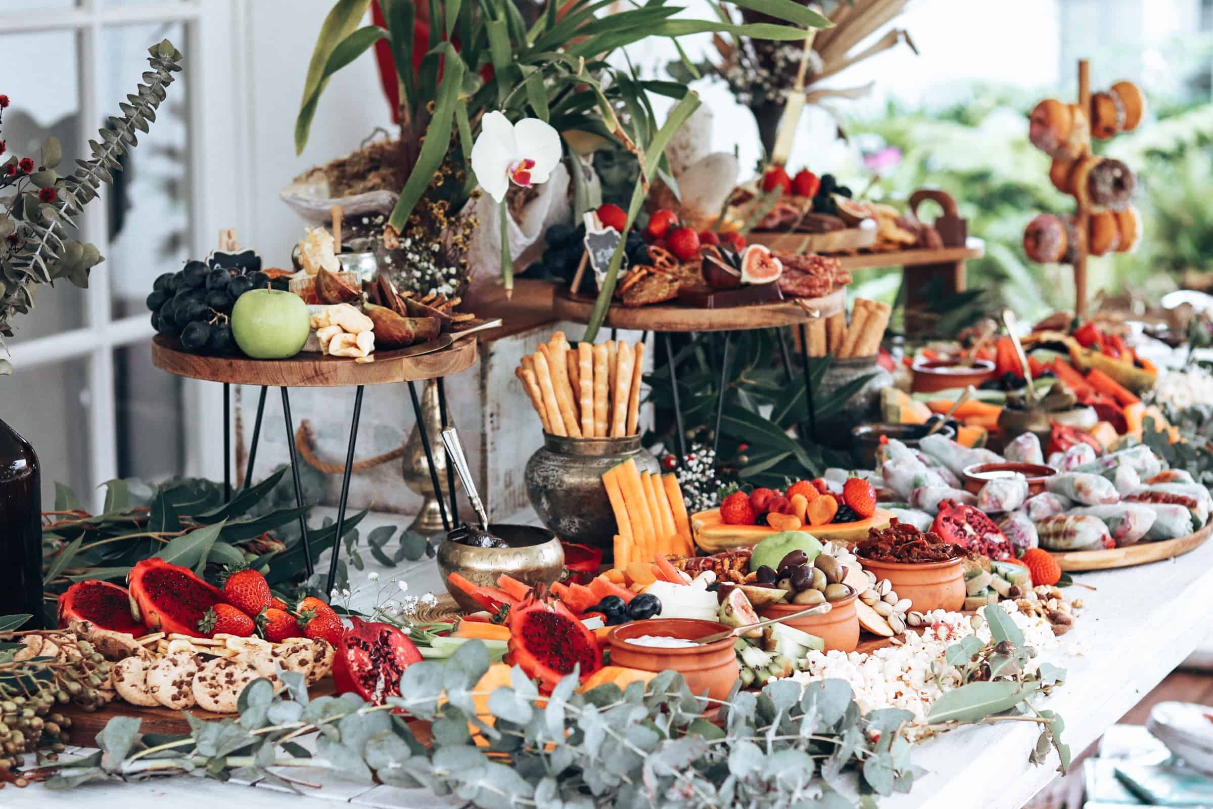 Impress your guests with a delectable and visually stunning grazing table. These abundant displays of delicious food not only serve as a feast for the taste buds but also create a feast for the eyes. Incorporate a variety of cheeses, fruits, bread, and other delectable treats to create a mouthwatering and Instagram-worthy display.