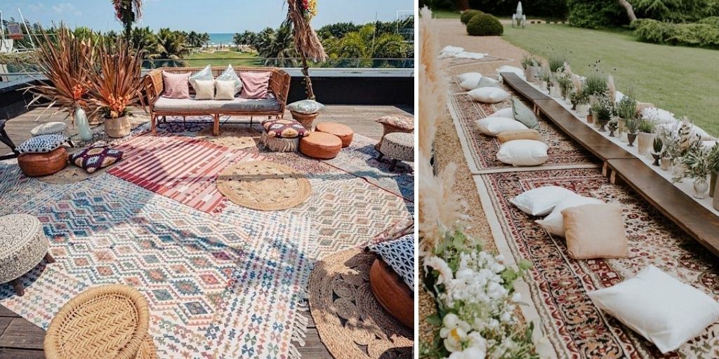 For a boho-inspired wedding, add a touch of bohemian elegance with vintage rugs. These beautiful designs can be used to line the aisle or create a cozy seating area for you and your partner. Choose rugs in colors and patterns that complement your wedding theme and enhance the overall aesthetic of your ceremony.