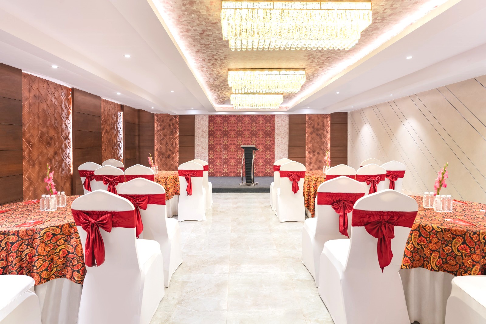 Elora Lords Eco Inn stands as a top-tier luxury hotel situated in the bustling center of Lucknow, Uttar Pradesh. It seamlessly combines classic hospitality with contemporary conveniences. This establishment caters to both vacationers and business guests, boasting multiple expansive and well-appointed banquet halls. These spaces are perfect for hosting weddings, conferences, and other significant events. The halls vary in size and can be tailored to suit the distinct needs of any occasion.Capacity - Up to 120 Guests