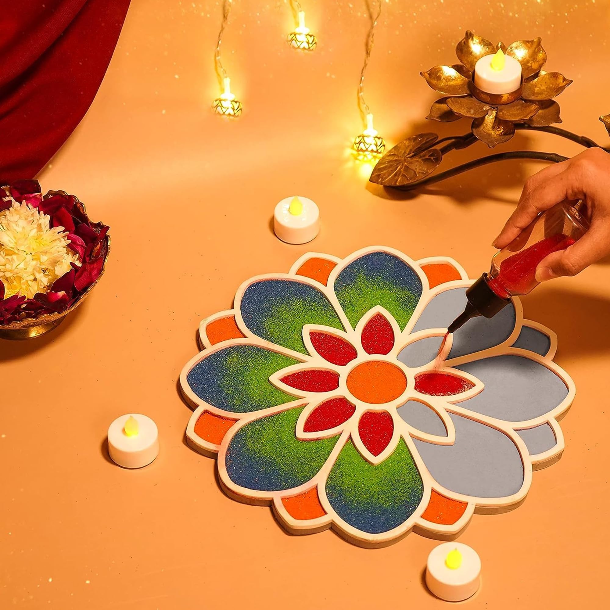 The puzzle encourages creativity and cognitive development in children. Once completed, the colorful rangoli can also serve as festive floor art, adding to the celebratory atmosphere of Diwali.