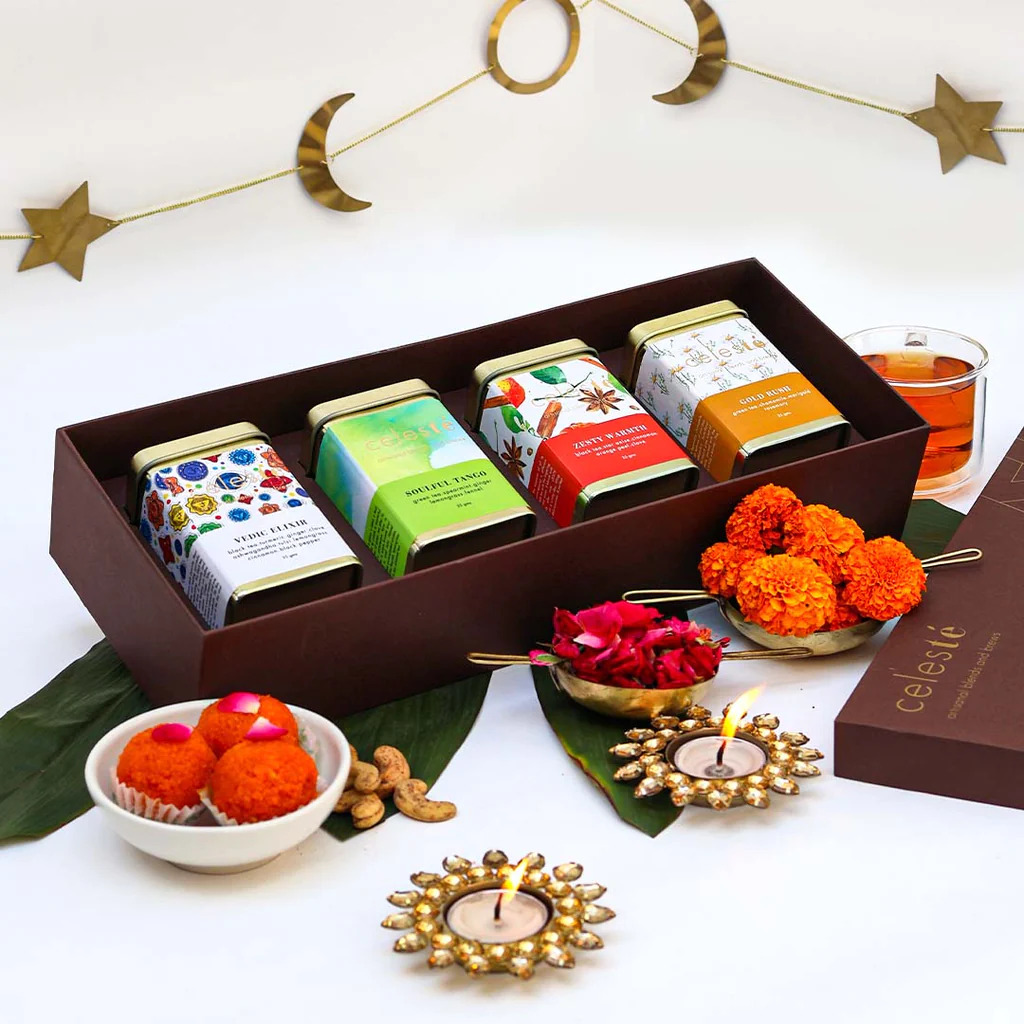 Tea is a staple in Indian households and is often exchanged as a gift during festivals like Diwali. A chai tea sampler box makes a fantastic gift for tea lovers, allowing them to explore a variety of flavors and blends.