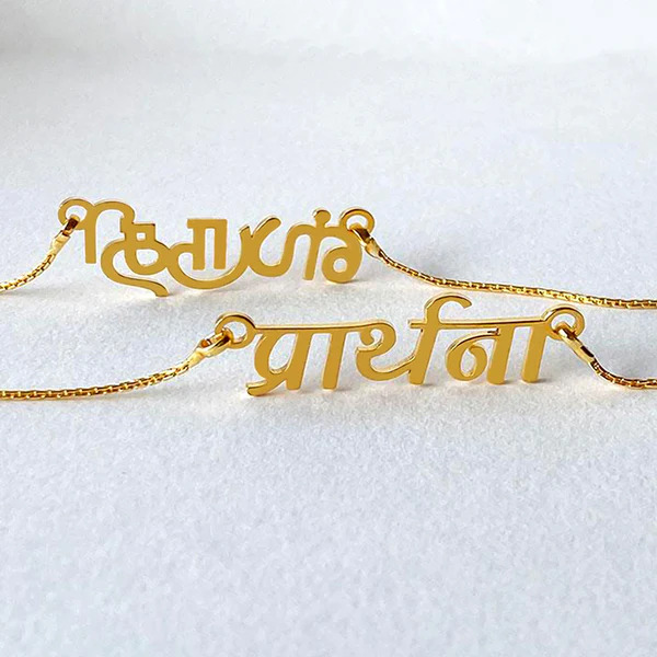 A personalized Hindi name necklace is a thoughtful and unique Diwali gift. It allows the recipient to wear their name or the name of a loved one, written in the beautiful Hindi script, close to their heart.
