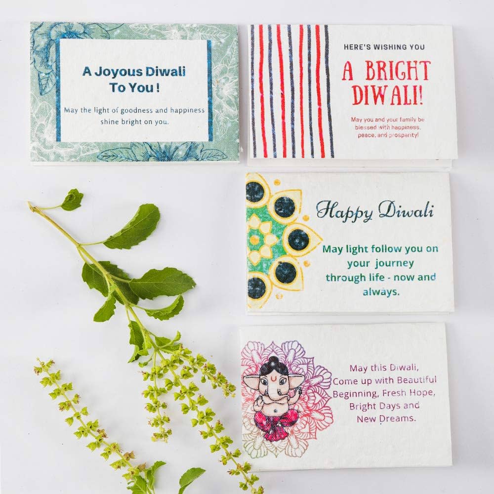 This Diwali, consider gifting plantable greeting cards. These unique cards come with seeds that the recipients can plant after the festival, creating a beautiful arrangement of herbs or flowers. It's an eco-friendly and meaningful way to enjoy the festival of lights while preserving nature, which symbolizes growth and prosperity.