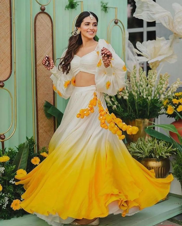 Here are some ombre outfits that will make you shine during your mehendi and haldi ceremonies:
