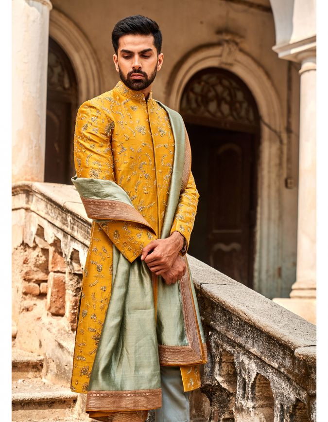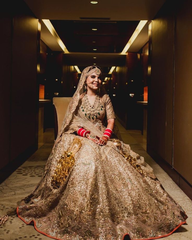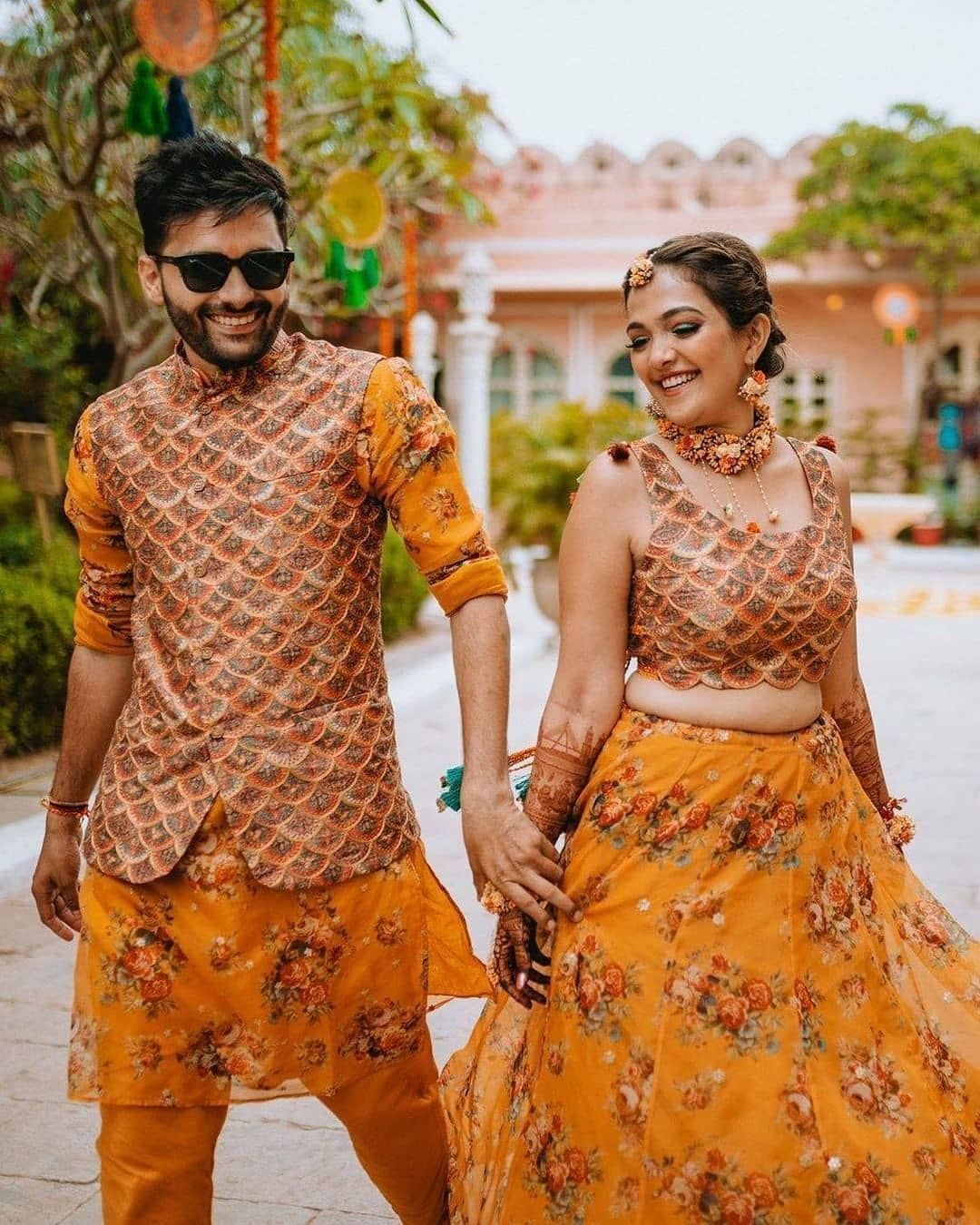 Brides bold enough to venture into the sphere of tangerine will be astounded by the stunning outcome. Grooms can enhance this lively hue with fashionable orange adornments or perhaps a captivating tangerine sherwani, embodying an aura of fun and exploration.