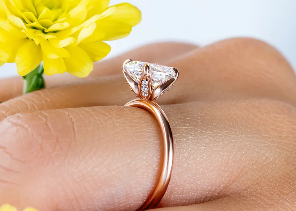 Floral motifs, vine-like bands, leaf-inspired prongs, and petal-shaped halos are trending among couples who want something dreamy and romantic. These naturalistic designs add a whimsical charm to engagement rings.