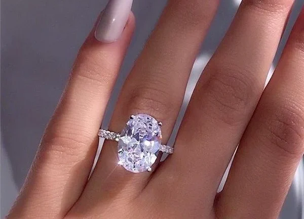 Oval diamonds have been trending for the past few years, and 2026 is no different. Their elongated shape offers a bigger surface area, giving the illusion of a larger stone, perfect for brides who love a classy yet glamorous look. Oval rings are elegant, flattering on all hand shapes, and pair beautifully with both solitaire and halo settings.