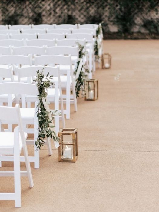 Line your aisle with lanterns or candles for a soft and romantic glow. If you're having an open-air wedding under the stars, string lights hanging above the aisle can create a magical atmosphere.