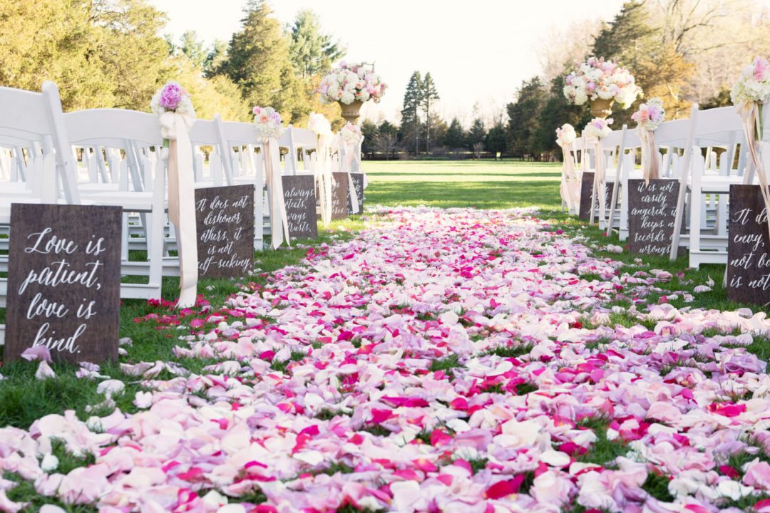 Customized aisles allow you to personalize your wedding décor. You can get a special message, your initials, or your wedding date written on the aisle.