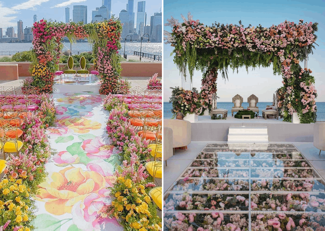 Floral aisles are a classic choice for wedding décor. From a bed of petals to intricate floral patterns on the aisle, the possibilities are endless. A floral aisle exudes a romantic vibe, enhancing the overall aesthetic of your wedding venue.