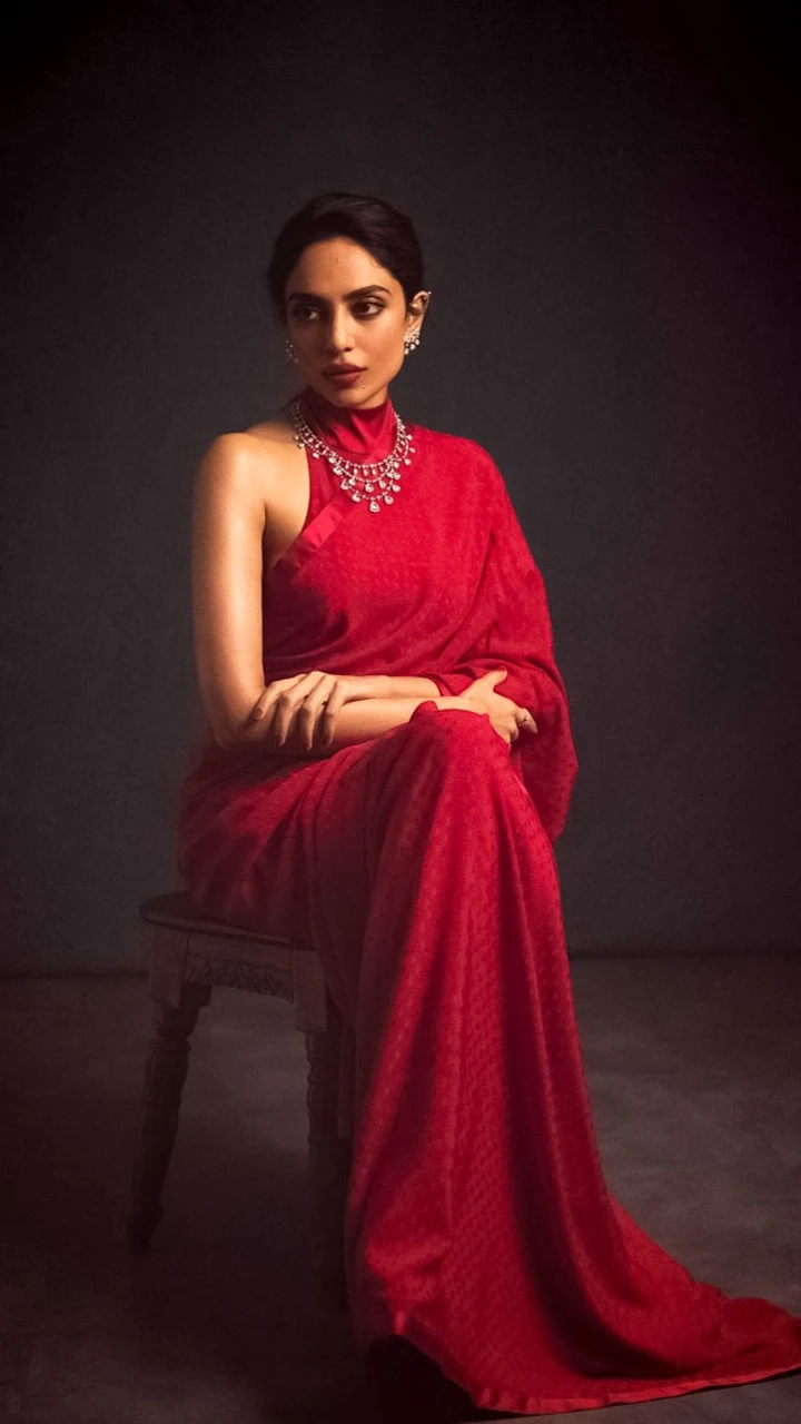 The trick is to balance the shine with clean styling. Keep your blouse sleek, wear minimal jewellery, and go for glossy makeup with highlighted cheekbones. This look is perfect for those who want a bold, glamorous farewell moment.
