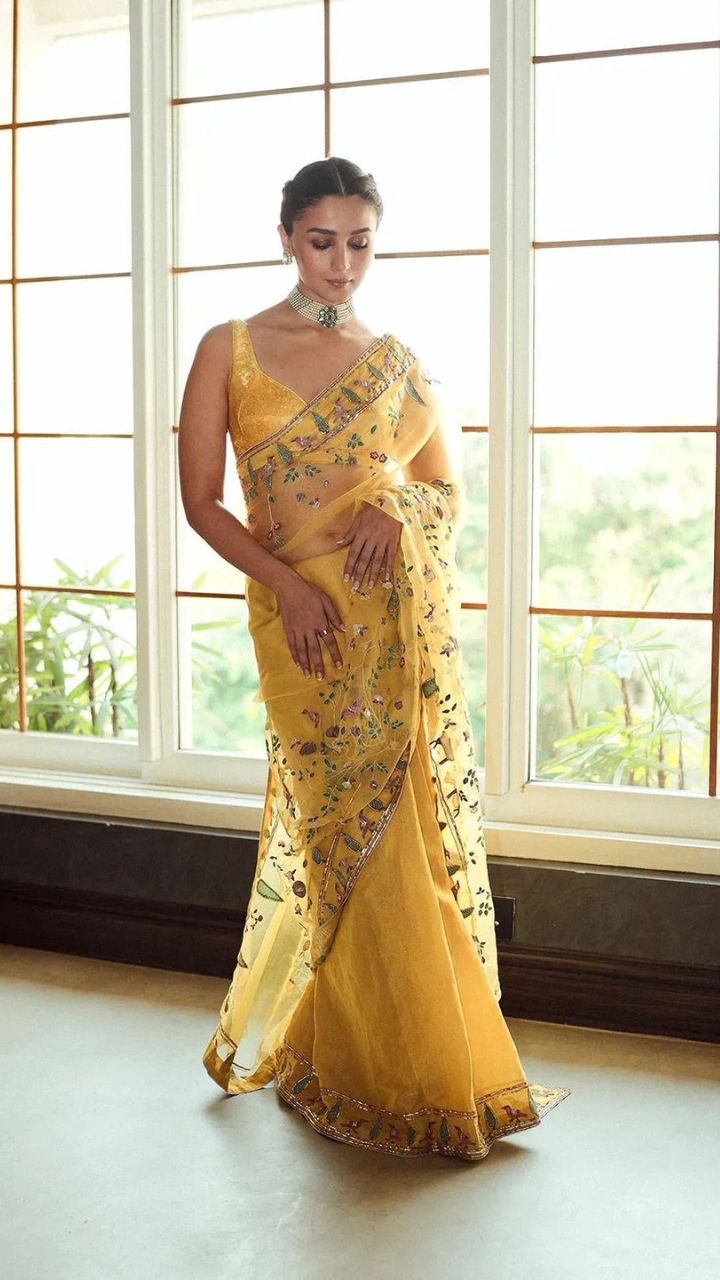 Choose subtle floral patterns on pastel or neutral bases for a classy look. Pair it with a simple blouse and minimal jewellery, and keep your makeup fresh with rosy tones. Floral sarees give effortless charm and look great in candid photos.