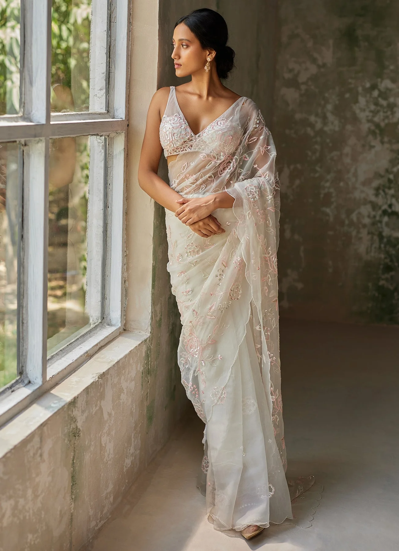 8. White or Ivory Saree for a Clean, Elegant Statement