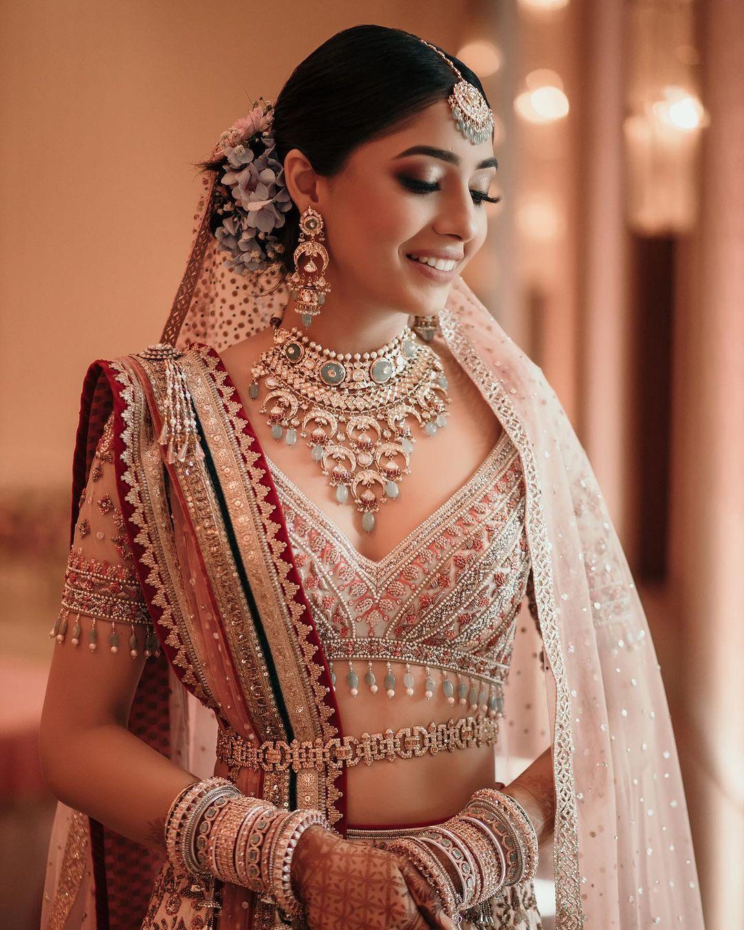 - Secure with a Belt: Place a belt over the waist, ensuring it overlaps the dupatta. This not only holds the drape in place but also highlights the waist, creating a stunning and cohesive bridal look.