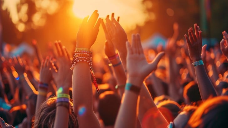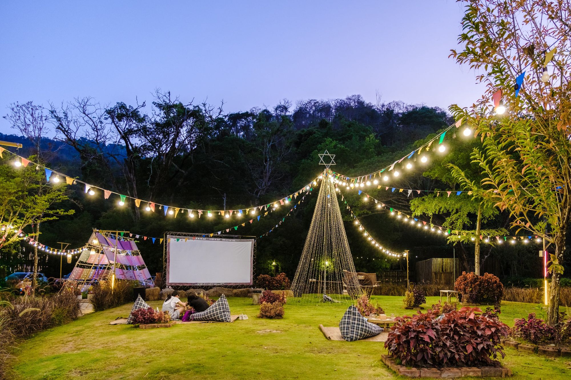 Recreate the energy of a music festival with a cool stage, fairy lights, open space, and live performances or a DJ. Glow sticks, funky wristbands, and food stalls will make it extra fun.