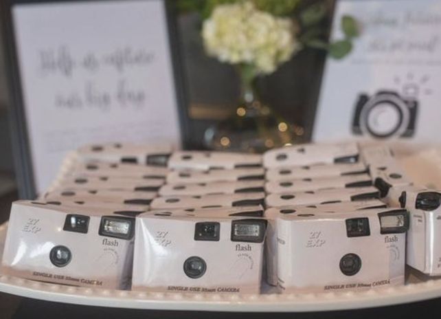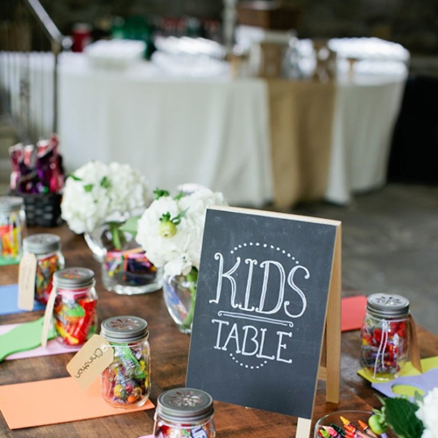 Designate a special table just for kids with vibrant decor, kid-sized chairs, and fun activities. Place disposable cameras on the table and encourage them to take photos. You could also provide interactive placemats with puzzles or coloring areas.