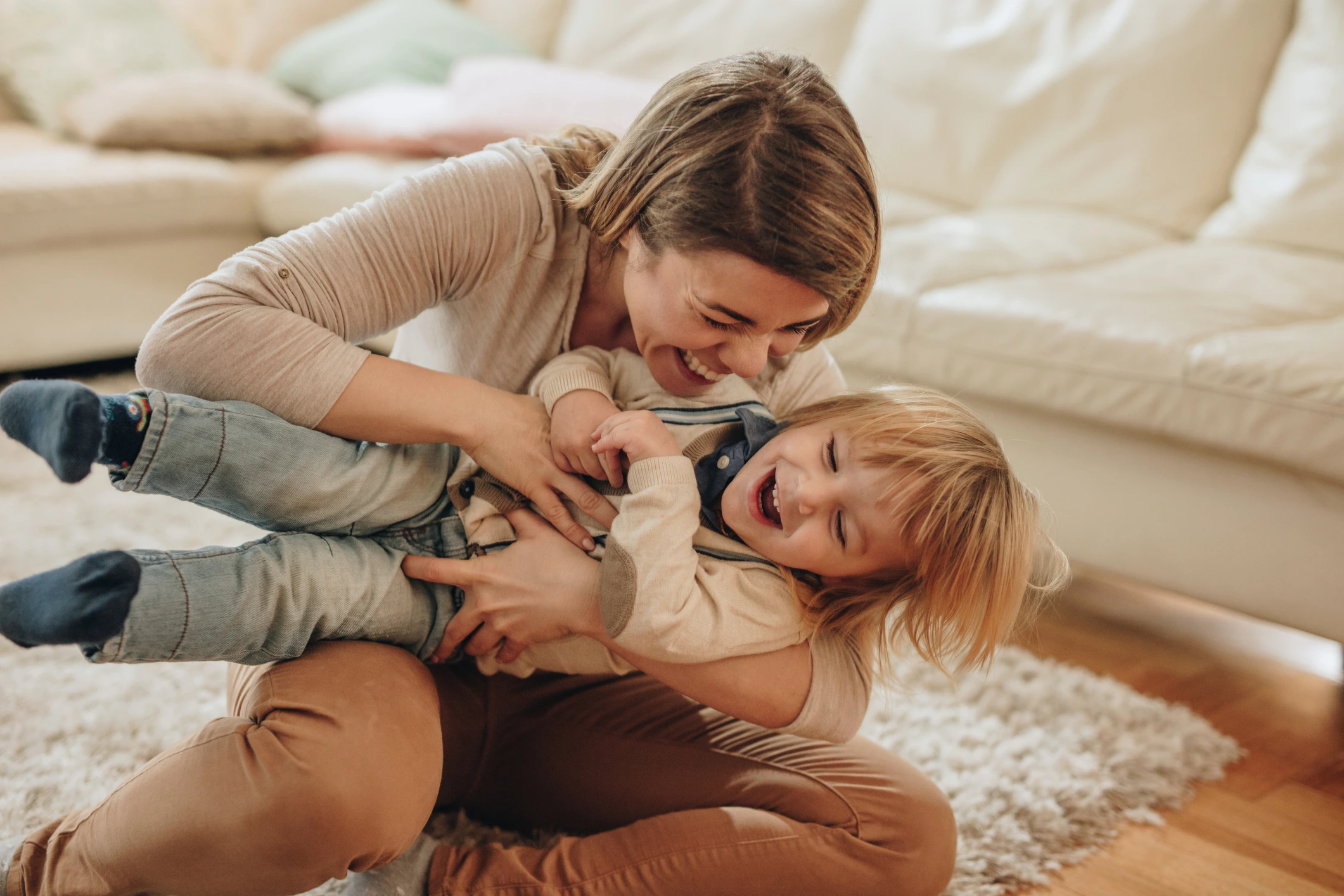 Jump on the bed and tickle each other till your stomach hurts.