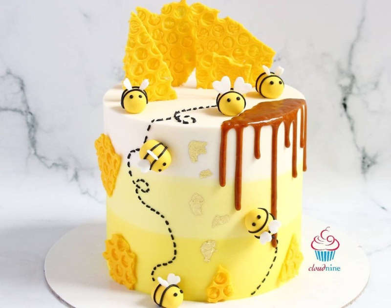 P.C.- @cloud9_kottayam-1This flamboyant yellow-based cake is likely to be a crowd-pleaser. The bee-themed cake will delight the children.